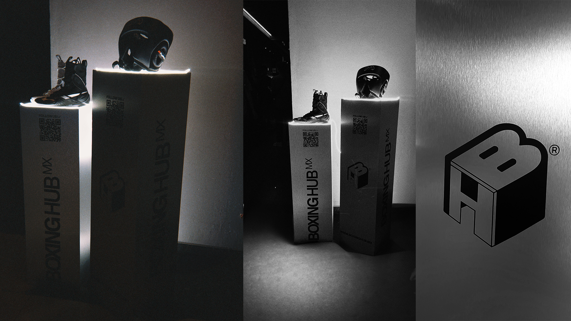 Brand identity for @boxinghubmx, a premium boxing-gear retailer based in GDL. For fighters who compete at the highest level and demand uncompromising protection. Visit www.boxinghub.mx